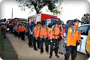 Bogor --- Kepala Kantor SAR Jakarta, I Ketut Parwa, S.H, M.M, selaku SAR Mission Coordinator kembali mengirim 2 Tim SAR gabungan yang berjumlah 804 personil guna mendukung tim yang sudah terlebih dahulu membuka akses menuju TKM (Tempat Kejadian Musibah). Tim ini yang selanjutnya akan membantu proses evakuasi korban dari TKM menuju Puncak SALAK I (2012 M) yang ditetapkan sebagai helipad untuk memudahkan proses evakuasi lewat jalur udara. Jalur darat yang telah direncanakan ternyata kurang efektif karena medan tang cukup terjal dan jauh sehingga bisa berlangsung cukup lama. Tim SAR Gabungan akhirnya tiba di TKM jatuhnnya pesawat Sukhoi Superjet 100 dan melihat kondisi pesawat yang sudah hancur. Tim langsung mengevakuasi korban yang ditemui di TKM dan memasukannya ke kantong mayat untuk dibawa menuju helipad di Puncak Salak I (2210 M) kemudian dilakukan pengangkatan korban oleh Helikopter Super PUMA TNI AU dan kemudian dibawa menuju helipad di Cijeruk untuk dibawa menuju Lanud Halim Perdana Kusumah. Tim SAR gabungan telah berhasil mengevakuasi 6 kantong mayat pada hari ini dan telah tiba di Lanud Halim Perdana Kusumah. Jumlah personil yang terlibat dalnm evakuasi ini berjumlah 947 personil yang berasal dari TNI, POLRI, BASARNAS, dan potensi serta relawan lainnya. Dan juga telah disiapkan SRU Udara berjumlah 3 unit diantaranya Helikopter Super Puma TNI AU, Helikopter Bolcow BO-105 BASARNAS, Helikopter PMI. (rml/hms).