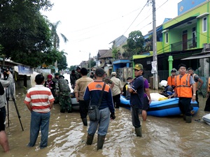 Bekasi - Musibah tak dapat dihindari lagi, sebagian besar wilayah Kota Bekasi direndam banjir dengan ketinggian air mencapai 2-3 M akibat tanggul untuk menahan air tidak sanggup lagi menahan derasnya aliran kali bekasi. Seluruh warga yang berada di pemukiman Villa Nusa Indah dan Perumahan Pondok Gede Permai Jati Asih Bekasi diminta untuk mengungsi untuk menghindari jatuhnya korban akibat banjir. Musibah yang terjadi pada senin, 4 Februari 2012 malam ini merupakan banjir yang terparah untuk 5 tahun terakhir. Seluruh potensi dikerahkan untuk membantu proses evakuasi di wilayah kota Bekasi dan sekitarnya khususnya Kantor SAR Jakarta yang pada saat kejadian membantu proses evakuasi di Perumahan Pondok Gede Permai dan Villa Nusa Indah sehingga 50 warga di daerah tersebut yg terparah bisa dievakuasi menuju posko pengungsian.