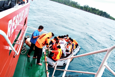 KN 224 Kantor SAR Jakarta beserta tim SAR gabungan dari TNI AL Lanal Banten , Polda Banten, Tim SAR Kantor SAR Jakarta dan Pos SAR Merak yang tiba di lokasi kejadian di Pulau Panaitan pada pukul 07.00 WIB langsung melakukan transfer logistik berupa makanan dan minuman serta bantuan medis untuk para korban. Hingga pukul 09.35 WIB Tim SAR Kantor SAR Jakarta beserta Tim SAR gabungan berhasil mengevakuasi 63 orang korban yang terdiri dari 2 orang warga negara Pakistan, 1 orang warga negara Iran, dan 60 orang warga negara Afganistan. (nt/hmsjkt)